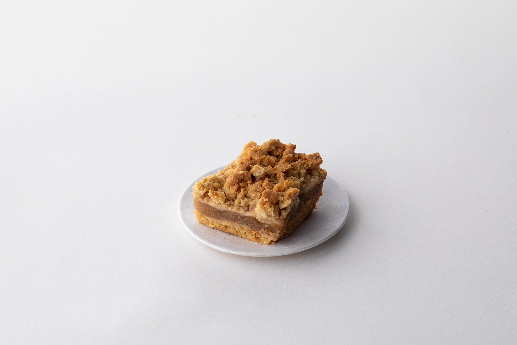 Shortbread taban üzerine çıtır crust, elma, tarçın ve tereyağlı crumb katmanları.