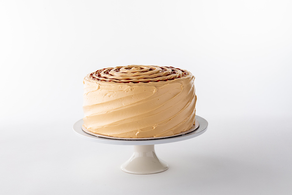 Zengin ve tereyağlı bu pasta esmer şeker ile yapılır ve caramel meringue buttercream ve karamel gezdirilerek bitirilir.