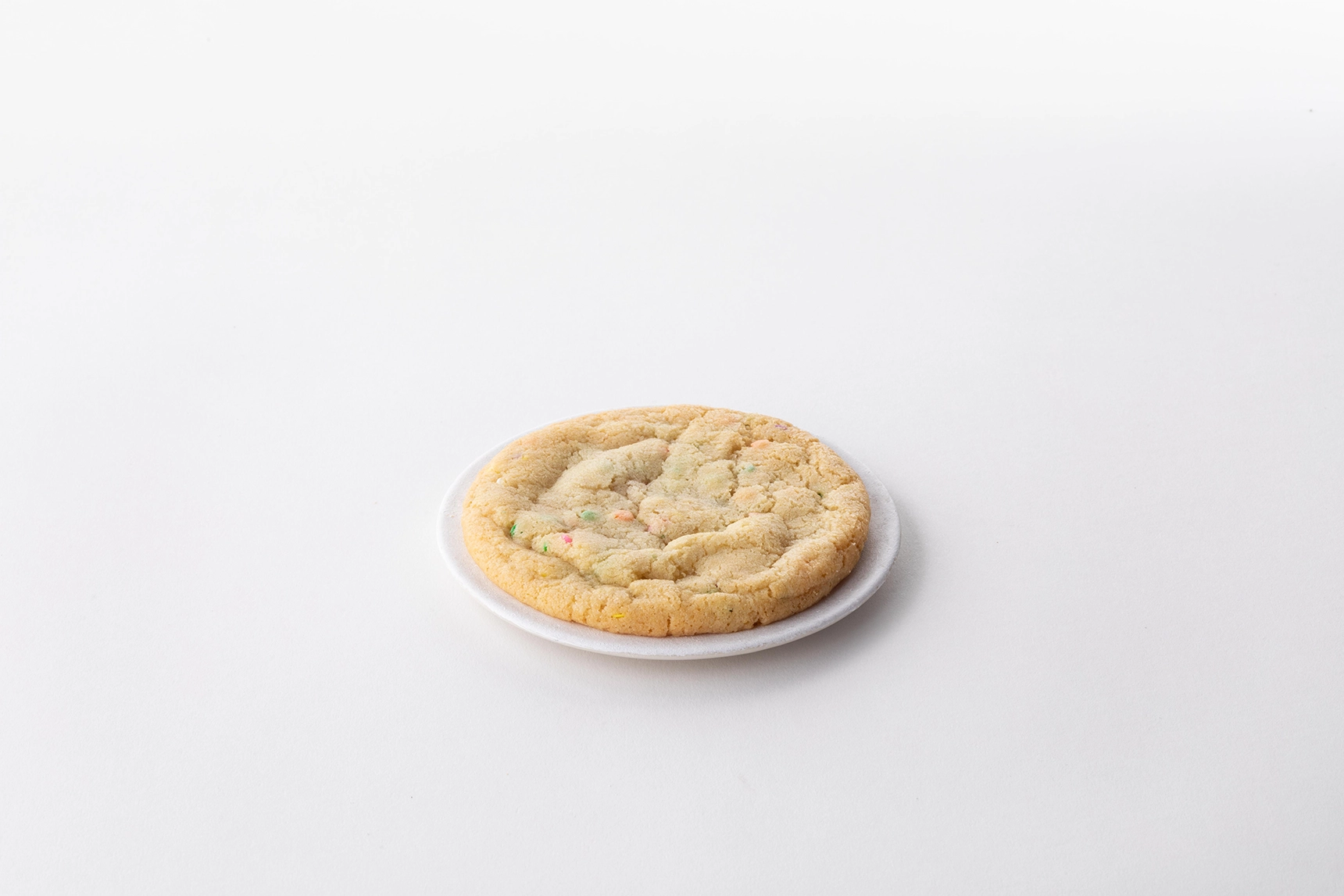 Büyük ve daha iyi, Confetti Cookie’miz büyük boyutta bir kurabiyedir. Üzerindeki rengarenk confetti şekerlemeleriyle tıpkı eğlencenin cookielerde vücut bulmuş hali.