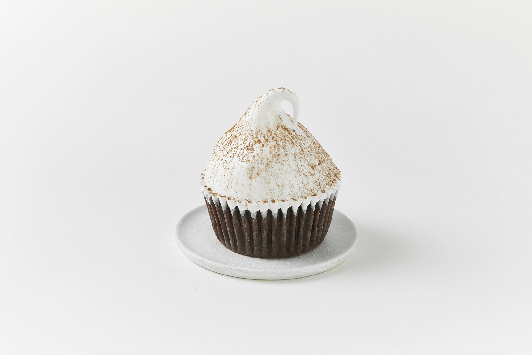 Sütlü çikolatalı ganaj dolgulu klasik Chocolate Cupcake, üzerine Meringue Icing ve toz kakao