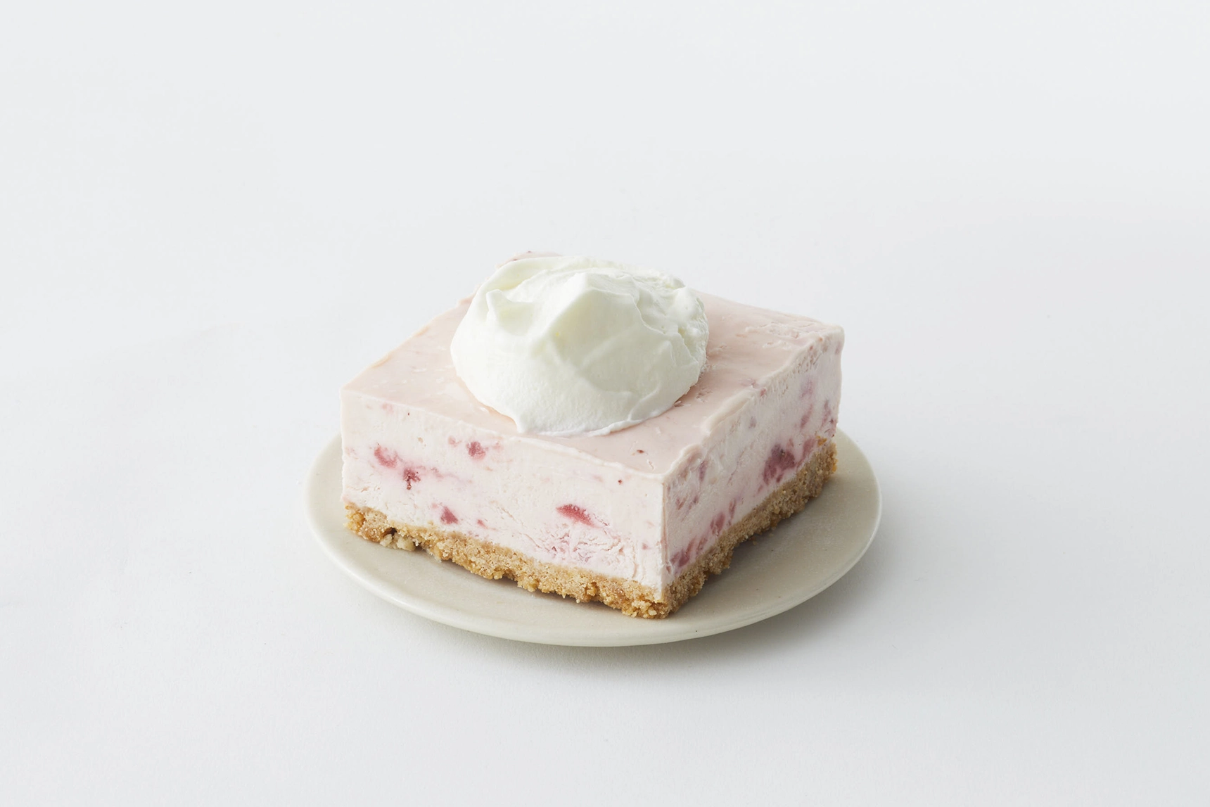 Nilla Wafer Crust tabanı üzeri; Çilek püresi, çırpılmış krema, limon zest, kondanse süt dolgulu eşsiz lezzet!
