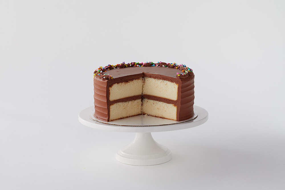 En populer cake’imiz! İnce bir tabana sahip, zengin ve tereyağlı eski usul kek. Çeşitli sprinkle süslemeler ve dekonlar kullanılarak chocolate veya vanilla buttercream ile sıvanır. Müşteriler vanilla cake’i herhangi bir sıvama ile ve renk tercihleriyle sipariş edebilirler.